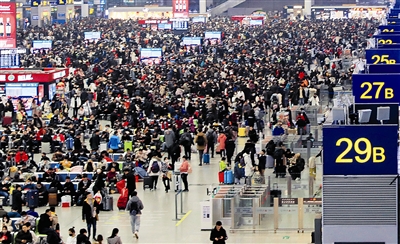 1月22日,旅客在上海虹桥站候车大厅内候车。