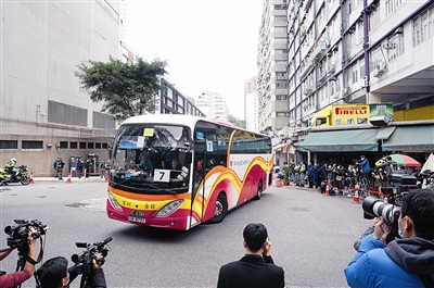 2月20日,首批被接回的香港居民乘坐专车,抵达特区政府设立在新界的火炭骏洋邨检疫营。