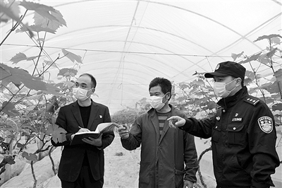 连日来,三门县公安局健跳派出所复工复产结合“三服务”活动,会同横渡镇纪委监委干部深入田间地头和农资店排查走访,督查走访疫情防控和农资储备、春耕备耕情况,确保疫情防控和春耕生产“两不误”。通讯员 林利军