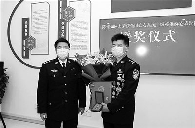 3月3日下午,湖州市委常委、公安局长夏文星,赴织里公安分局轧村警务站,为“全国公安系统二级英雄模范”陈建如同志授奖,向他表示热烈祝贺并致以崇高敬意。