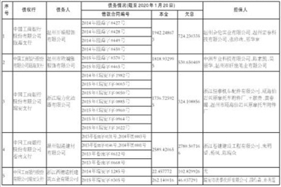 单位:万元 注 1、本公告清单列示截至2020年1月20日的贷款本金余额,借款人和担保人应支付给温州德豪资产管理有限公司的利息、罚息、违约金及其它应付款按借款合同、担保合同及中国人民银行的有关规定或生效法律文书确定的方法计算,实际计算与欠息金额不一致,以实际计算为准。已经进入诉讼程序的,并已由浙江省浙商资产管理有限公司垫付的应由借款人及担保人负担的诉讼费、执行费等以有关法律文书确定的金额为准。 2、若借款人、担保人因各种原因更名、改制、歇业、吊销营业执照或丧失民事主体资格的,请相关承债主体及/或主管部门代位履行义务或履行清算责任。 3、清单中“担保人”包括保证人、抵押人、出质人。担保人的担保范围以签署的合同等法律文件约定为准。如公告中债务人、合同编号、债权金额、担保人等信息与事实不符的,以签署的合同等法律文件约定为准。 |