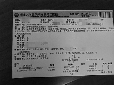 小程说,自己是事发3月5日当晚7点多接到电话,才知道老爸被狗咬伤,便匆匆赶到医院看望。