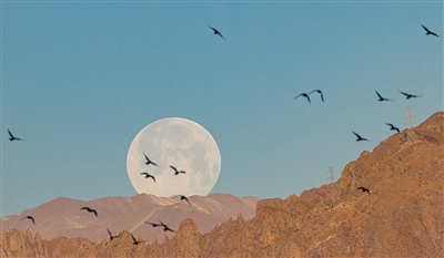 这是在拉萨市内拍摄到的满月(3月10日摄)。