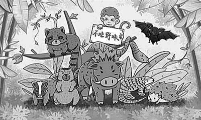 2月24日,十三届全国人大常委会第十六次会议审议通过了《关于全面禁止非法野生动物交易、革除滥食野生动物陋习、切实保障人民群众生命健康安全的决定》。人类和大自然是命运共同体,保护野生动物就是保护人类自己,希望大家不要放纵口腹之欲,全面禁食野生动物。