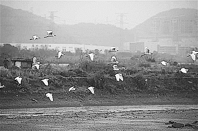 “除了白鹭,还有野鸭、天鹅、黑水鸡等鸟类在此歇息觅食。”峡山村养殖户介绍,这些鸟儿每天一大早就在天空盘旋,待到养殖户清塘后,塘底露出活蹦乱跳的一些小鱼小虾,它们就会争先恐后地从天而降大饱口福。