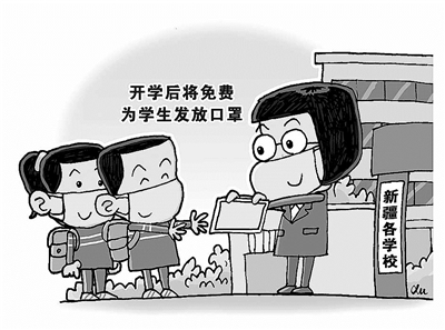 首批学生3月16日开学后,新疆将为各地学校配齐疫病防控物资,给学生免费发放口罩,以保障复学后中小学生和教职工的健康安全。新华社 徐骏 作
