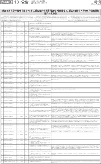 浙江省浙商资产管理有限公司 浙江浙北资产管理有限公司 对日德电机(浙江)有限公司等189户企业债权资产处置公告
