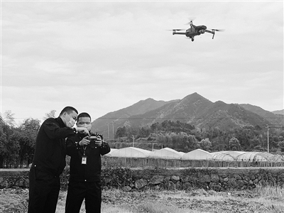 3月23日,天台县公安局白鹤派出所利用无人机在辖区进行空中巡逻,逐一巡查辖区内可能非法种植罂粟的区域,并向辖区群众普及禁毒知识。通讯员 许尚高 唐峰