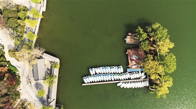 3月23日拍摄的济南大明湖春光(无人机照片)。