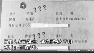 近日,有网友晒出一张结婚证走红,结婚证上的男方姓名:辛冠;女方姓名:费妍。合起来与“新冠肺炎”同音,网友看后直呼:全网唯一,最牛结婚证!随后当事人出来辟谣:证件照被人冒用,名字不是自己的,希望大家不要再恶意转发了。