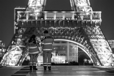 埃菲尔铁塔夜间闪灯是巴黎市著名夜景之一。每晚8时整,铁塔塔身闪起璀璨灯光,夜色中宛如星光瀑布。近日,铁塔的闪灯时间比平日延长了5分钟。同时,周围居民楼里响起了人们的掌声和欢呼声。整个法国,用灯光与掌声,向奋战在抗击新冠肺炎疫情一线的医护人员表达敬意。新华社发