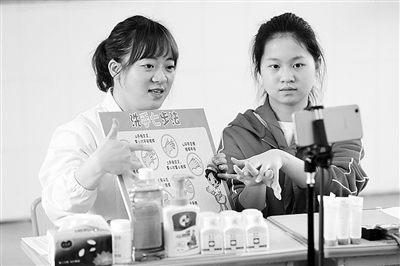 3月26日,德清县武康街道卫健办联合团委开展“卫生小知识”云课堂,邀请卫生院医生来到东风小学“直播间”,利用网络直播教学的方式,向学生们传授洗手七步法、如何正确戴口罩、公筷卫生等防疫知识。