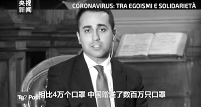 当地时间24日,意大利外长迪马约在接受采访时表示,意大利疫情暴发后,中国第一个向意大利提供医疗物资,并派遣医疗专家。“当初武汉疫情暴发时,意大利向中国赠送了4万只口罩,而被指责廉价抛售了用来保护意大利人的物资。如今,中国回赠数百万只口罩。”