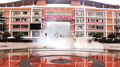 3月29日,仙居县水域搜救队10多位党员和青年志愿者在仙居第二中学进行“地毯式”消毒杀菌。