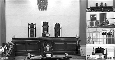 | 图为永嘉县法院刑事案件远程视频庭审现场 |