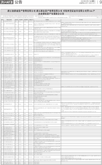 浙江省浙商资产管理有限公司 浙江浙北资产管理有限公司 对杭州昱辰家具有限公司等166户 企业债权资产处置联合公告