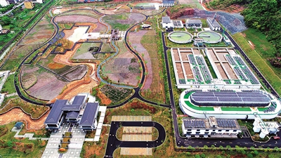仙居县将水处理功能、光伏发电和休闲游憩等功能相结合,打造花园式污水处理厂,将厂区周边200多亩湖滩改造成一片人工湿地公园,栽种了20多种净水植物来净化尾水;同时在污水处理池上建起1.1万平方米的太阳能光伏发电站,每年可提供140多万度绿色清洁电能。