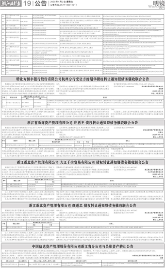 浙江省浙商资产管理有限公司 庄再冬 债权转让通知暨债务催收联合公告