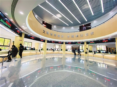 走进中心,映入眼帘的是有序的环境:市民自助选择反馈矛盾的部门,工作人员根据反映事项的性质、种类、程度,将其引导至不同功能室。