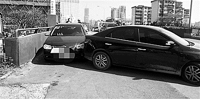 原来沈师傅就在旁边工地上班,当天早上6点30分,他将车停在程女士车的后方就离开了。因为停车点是个斜坡,没一会儿,车子慢慢溜了下来,撞在程女士车子的尾部。9点10分,程女士办完事来开车,当时并未发现异样,当她启动车子缓慢起步时,只听到后面“嘭”的一声,原来是紧贴着车尾的蓝车继续往下溜,造成二次撞击。
