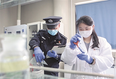 4月8日,嘉善县惠民派出所组织民警,对辖区内131家易制毒化学品企业的运输、储存、使用等环节,进行全面“安全体检”,杜绝易制毒化学品发生流失、失控、漏管等情况。通讯员 潘建荣