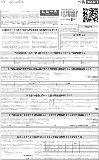 浙江省浙商资产管理有限公司与富新泰丰门业有限公司债权转让通知暨债务催收联合公告