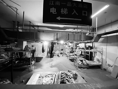 “酒店地下车库用塑料尼龙布分割成格子间,住了很多工人,吃喝拉撒都在一起,电线也是乱拉的,万一引发火灾怎么办?”近日,本报记者接到市民李女士的爆料,称在湖州江南一品大酒店就餐时发现了位于地下停车场的集体宿舍。