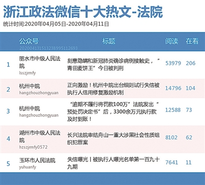 本期法院榜上,“丽水市中级人民法院”夺得“双料冠军”,由其发布的《刻意隐瞒和新冠肺炎确诊病例接触史,“青田麦饼王”今日被判刑》,获得最高阅读数。在该文章下,网友纷纷留言并发表自己的看法。