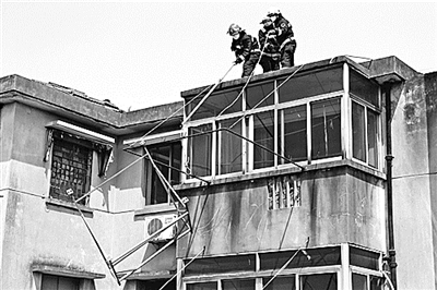 4月12日19时36分,嘉兴市南湖区消防救援大队分指挥中心接到报警,称在南溪路银柳坊小区一居民楼楼顶的太阳能热水器被吹移位,一半悬挂在楼顶护栏外,摇摇欲坠,附近居民不敢通行,报警求助。南湖区消防救援大队立即出动1车7人,赶往事发现场查看情况。