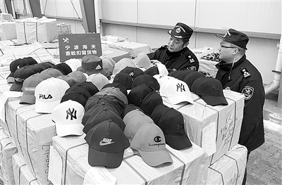 据了解,该批货物申报品名为沙滩巾、化纤帽子、化纤包等日常货物。海关在查验时发现,除了集装箱门口的道具货物外,大部分货物均为帽子和眼镜。经联系权利人确权,确认为侵权产品。
