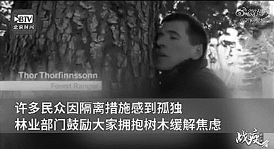 英国BBC报道,冰岛许多民众因隔离感到孤独,林业部门鼓励大家拥抱树木缓解焦虑。工作人员表示,抱树时闭上眼把脸贴树,可以感到一股暖流从树中流进身体,会有一种放松的感觉。工作人员还称,每天抱着一棵树5分钟就够了。