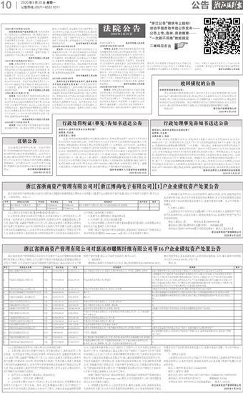 浙江省浙商资产管理有限公司对慈溪市暻辉纤维有限公司等16户企业债权资产处置公告