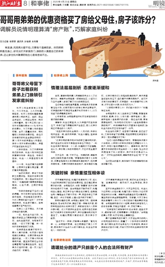 对于调解员的话,钱耀仍觉得有失公平,他认为当初购房时用了自己的优惠资格,自己理应享受更多的份额。余明胜见状,采取“背靠背”的方式单独与他进行了沟通。在余明胜的不断劝说下,钱耀说出心里话,其实房子给大哥住他没意见,但是租给别人赚租金也不跟大家说一声,而且母亲立下遗嘱,自己一点也不知道,心里头自然就不平衡了。
