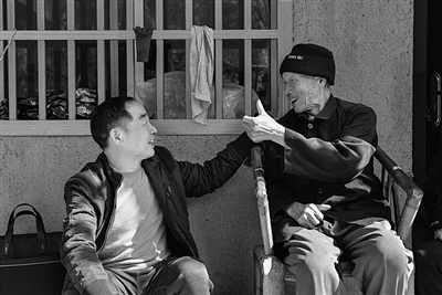 | 王军法(左)走访寮坑村85岁老党员王洪亮 |