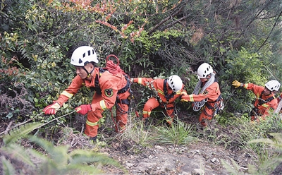 | 山岳救援过程时,救援人员经常要自己开路 |