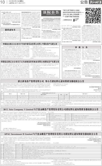 APAC Investment II Limited与宁波金融资产管理股份有限公司债权转让通知暨债务催收联合公告