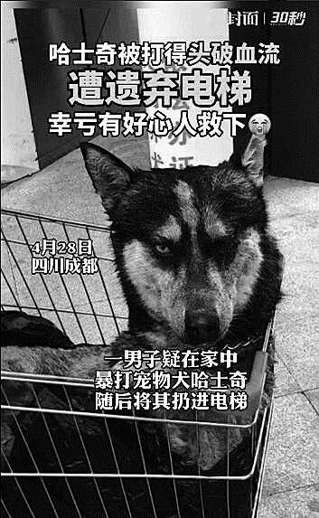 成都男子虐待哈士奇后扔电梯 已到派出所接受调查