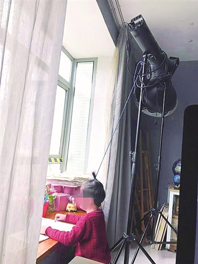 | 李闯效仿古人让儿子“头悬梁”,用长绳高高地束起其头发。 |