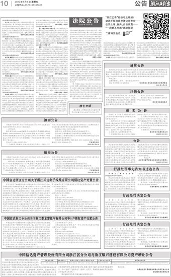中国信达浙江分公司关于浙江泰龙摩托车有限公司等5户债权资产处置公告