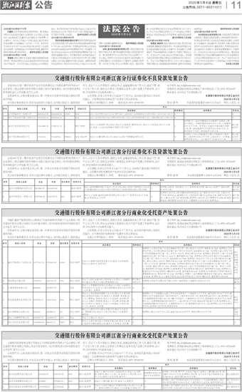 交通银行股份有限公司浙江省分行证券化不良贷款处置公告
