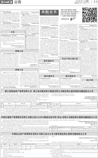 浙江省浙商资产管理有限公司 浙江裕洋隧道管片制造有限公司债权转让通知暨债务催收联合公告