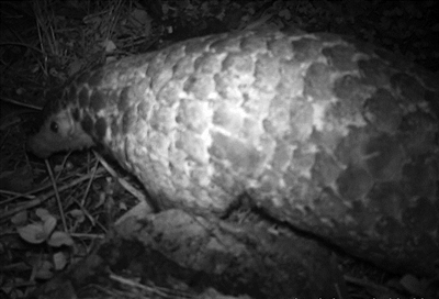 | 被红外相机拍到的穿山甲 |