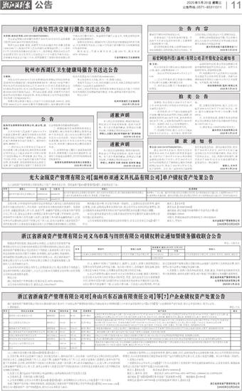 浙江省浙商资产管理有限公司对【舟山兴东石油有限责任公司】等【7】户企业债权资产处置公告