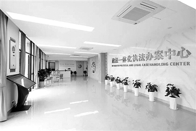 今年4月,新建成的平阳县公安局执法办案管理中心,融入“政法一体化”元素,增加政法联动区,检察、法院、司法行政机关派员入驻,实体化集中办公。通过应用政法一体化办案系统,实现办案数据信息的融通、共享,既保障各政法单位分阶段按职能办理各类刑事司法业务,又给面对面协同作战提供了优质的办案条件。中心还设置了公检法司统一接待窗口,受理律师阅卷申请、法律援助申请等业务,方便律师参与刑事诉讼活动。
