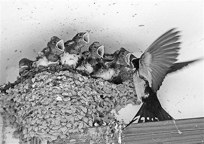 5月26日,杭州玉泉街道青芝坞小区的民宿屋檐下,10余窝雏燕相继破壳而出,在泥筑小窝里张着嫩黄的嘴,等着燕子父母捉虫回来喂食。近年来,青芝坞区块经过综合整治和环境提升后,独特的生态条件和人们的友善相待,引得前来筑巢繁衍的燕子逐年增加。