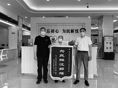 近年来,三门县社会矛盾纠纷调处化解中心以“不忘初心,为民解忧”为宗旨,帮助当事人排忧解难,保障当事人合法权益。自中心2019年9月成立至今年5月,万人成讼率59.475件/万人,同比下降42.59%,环比下降41.98%,调解团队工作得到群众广泛认可。图为群众为调解团队送锦旗。