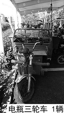 杭州市余杭区综合行政执法局临平新城中队在执法巡查过程中,当事人弃留现场的财物:翻斗车18辆、环卫三轮车1辆、旧轮胎20个、桌板32套、雨棚1顶、灯箱1个、脚手架1副、混凝土振动泵1把、铝制折叠桌6张、铁架子4个、测量仪器2件、三相电线及插座1套、穿线机1台、光缆线1卷、折叠桌(圆)1张、折叠桌(方)1张、电子笃牌1块、塑料凳子5张、发电机1台、石膏板15块、小音箱1台、养护电瓶三轮车1辆、样品瓷砖46块、展示瓷砖80*80 22块、展示瓷砖40*80 8块、展示瓷砖地脚线3捆、展示桌套1张、展示架2个、水槽1个、电瓶三轮车1辆。
