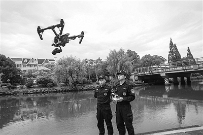 天气转热,台州市公安局黄岩分局巡特警大队民警利用无人机开展河道巡查,预防溺水事故发生。通讯员 喻跃翔 摄