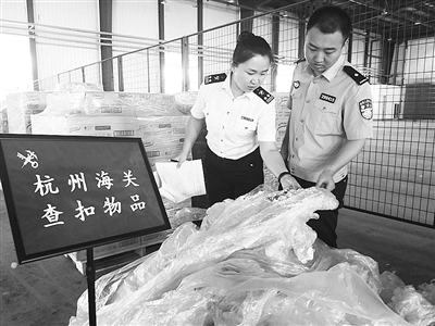 本报讯 6月9日,经鉴定,此前杭州海关查获的废塑料缠绕膜属于我国禁止进口类固体废物。据悉,这是海关首次在浙江进口货运渠道查获此类“洋垃圾”。