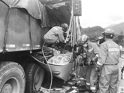 本报讯 6月11日10点54分,G25长深(丽龙段)高速公路云和往龙泉方向,发生客车追尾货车事故。